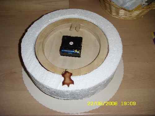 aufgeklebt und das Uhrwerk befestigt. |