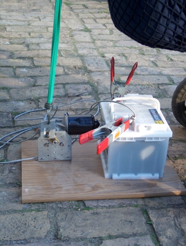 | vom Motor zum Gummi, welcher mit dem Kinderwagen verbunden |